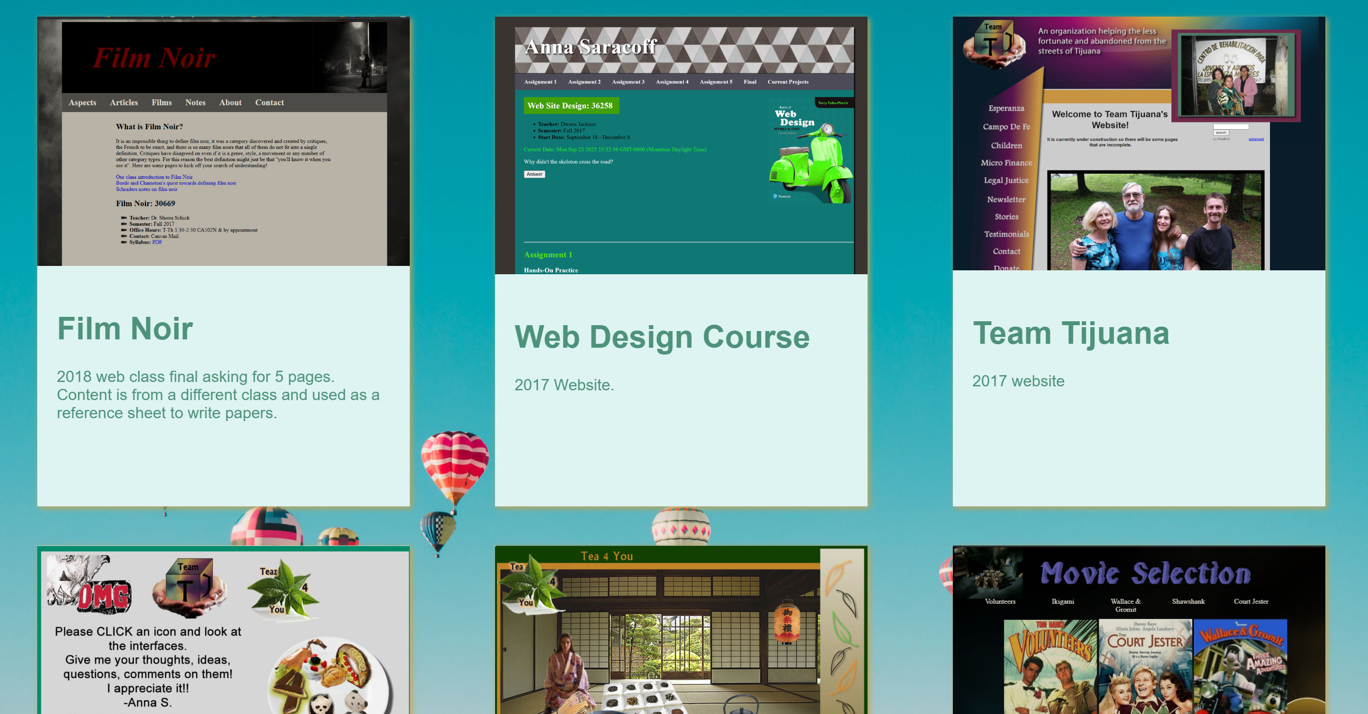 An archive of previous web pages done in past classes using different softwares such as Dreamweaver and Fireworks as well as traditional coding HTML/CSS.