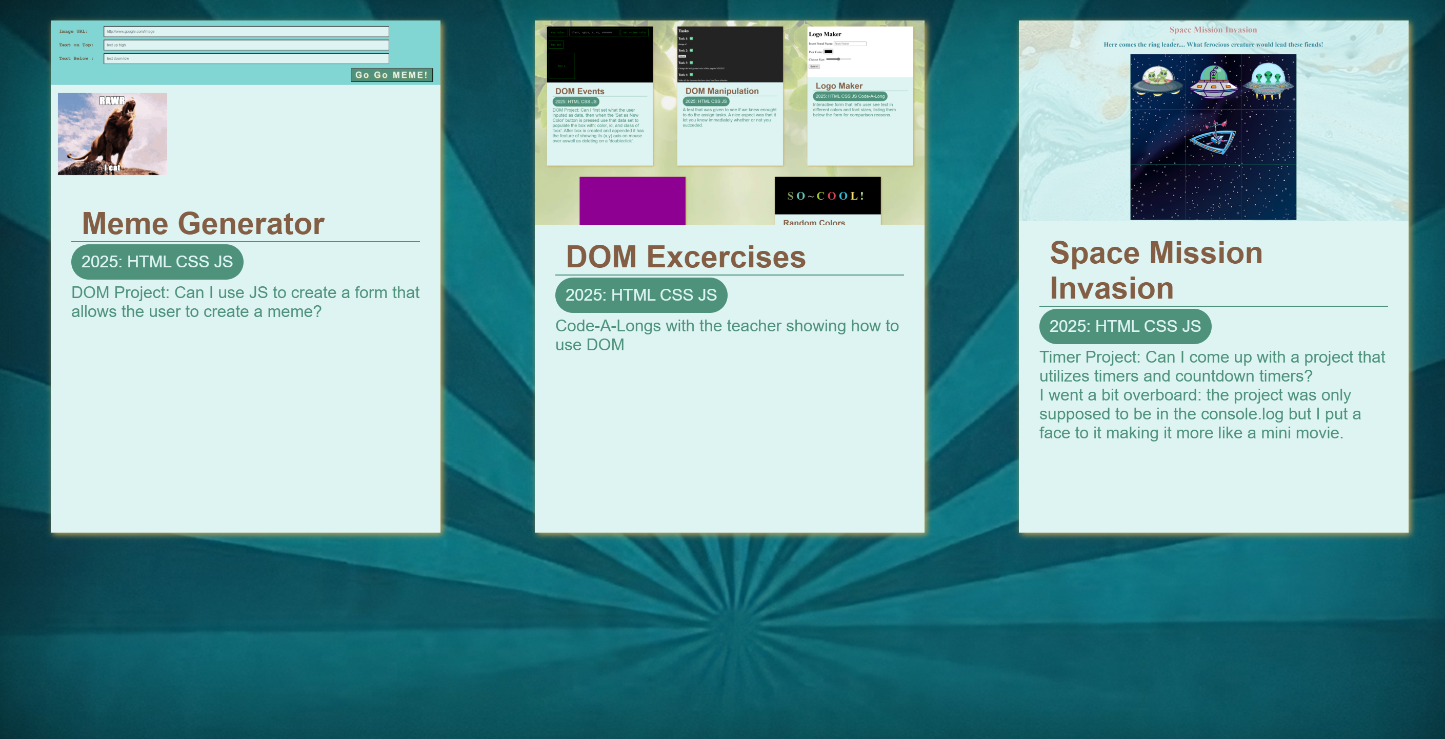 - Side Projects: Walkthroughs found on YouTube that I followed to better understand what was being taught in class